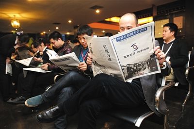 世界互联网大会上,众人在看新京报制作的《世界互联网大会会刊》。新京报记者 尹亚飞 摄