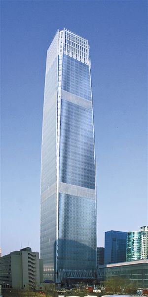 国贸三期工程主楼以330米的身高,被称为京城第一高楼,是CBD具有代表性的建筑。国贸三期与国贸一期、二期一起构成110万平方米的建筑群,成为世界最大的国际贸易中心。