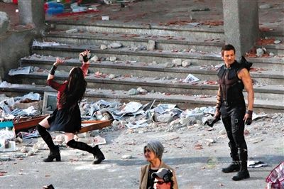 在一组《复联2》的片场照中,看着眼前面对空气表演的奥小妹,鹰眼都无奈了。