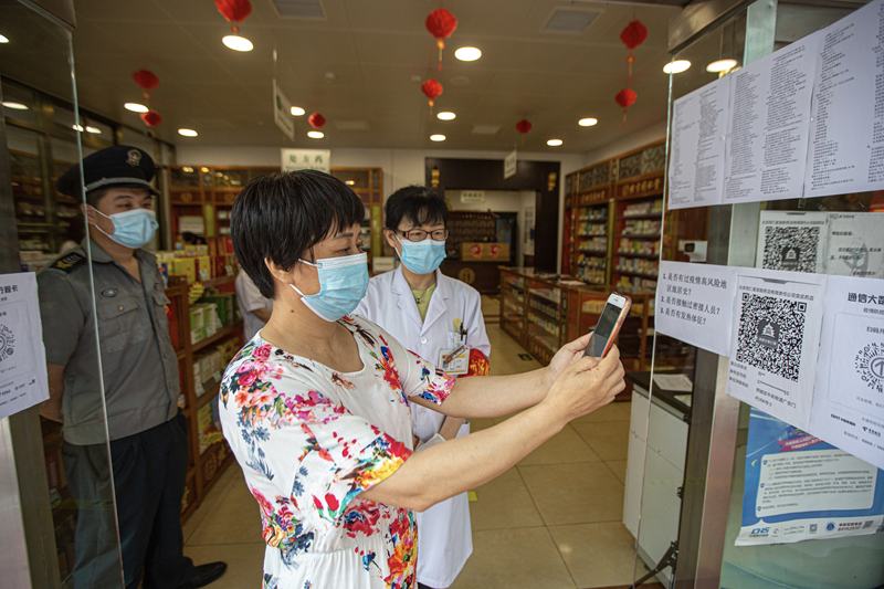 ▲2021年8月11日,北京同仁堂宣武药店,市民进入药店需扫码并测温。新京报记者 郑新洽 摄