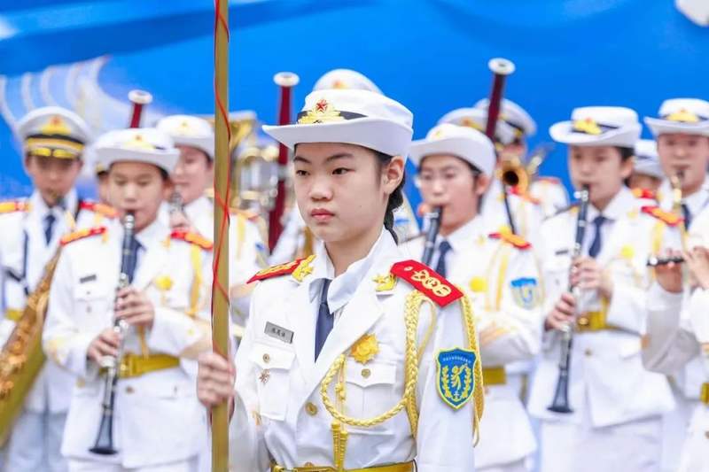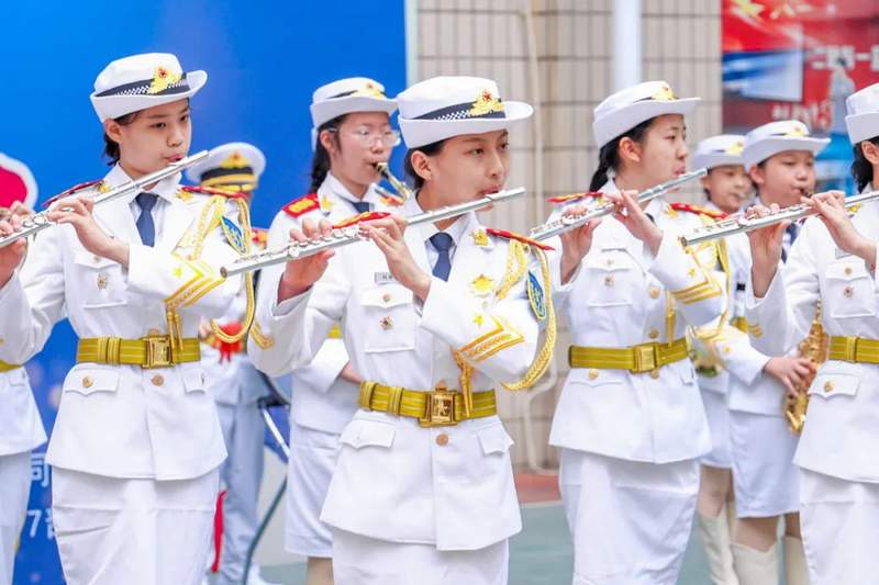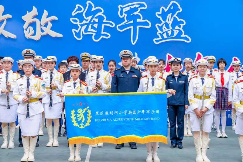 和着铿锵有力的团训口号,黑芝麻胡同小学蔚蓝少年军乐团闪亮登场。《歌唱祖国》《队列进行曲》《我爱这蓝色的海洋》等乐曲的演奏,赢得了现场官兵的热烈掌声。