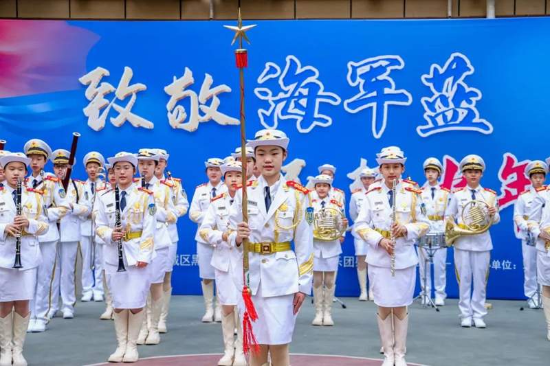 2024年4月19日,在中国人民海军成立75周年即将到来之际,黑芝麻胡同小学蔚蓝少年军乐团及六(9)中队少先队员代表赴91917部队慰问海军官兵。