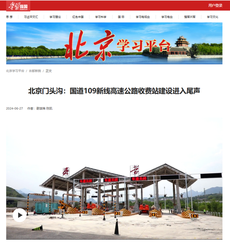 6月27日学习强国平台刊发国道109新线高速公路八工区负责的斋堂收费站工程已接近尾声,这标志着国道109新线高速公路向通车又迈进一步。