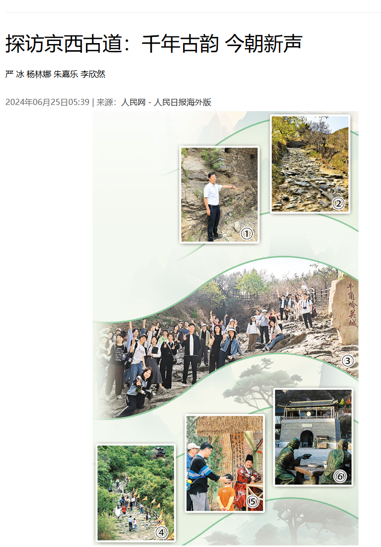 6月25日人民日报海外版报道门头沟区举办“文化和自然遗产日”活动,推出“古道拾遗”非遗体验路线,将京西古道沿途景点、非遗项目结合起来,让游客在饱览自然风光的同时,感受非遗魅力。