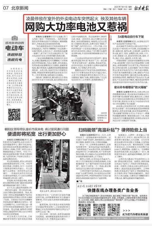 7月11日北京晚报报道,门头沟区三家店一平房居住区一辆停放在室外的电动自行车起火燃烧。微型消防站队员接到通知后第一时间派人赶赴现场妥善处置。