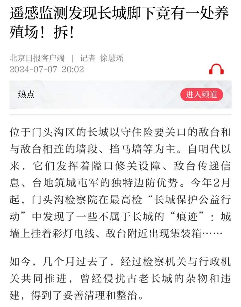 遥感监测发现长城脚下竟有一处养殖场!拆!