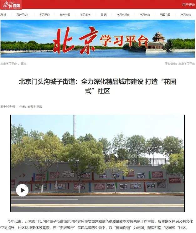 7月9日学习强国平台刊发门头沟记者实地探访城子街道打造“花园式”社区。
