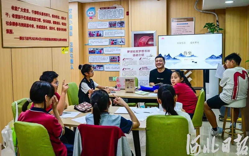 6月14日,容东片区罗河社区梦想书坊举办的公益读书会现场。河北日报记者 耿辉 摄