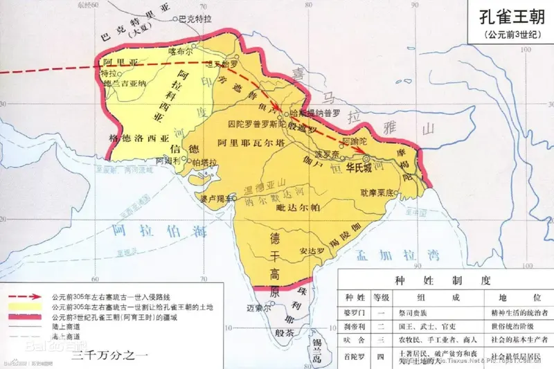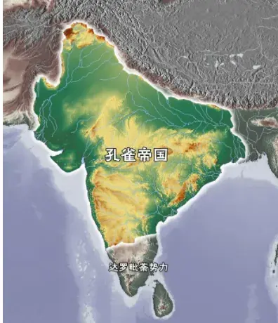 公元前327年,马其顿国王亚历山大东征侵入了印度西北部。亚历山大在公元前323去世,留下了巨大的权力真空,旃陀罗笈多趁机集结军队,在印度东北部的摩揭陀国推翻了难陀政权,结束了列国时代,统一北印度建立了孔雀王朝。