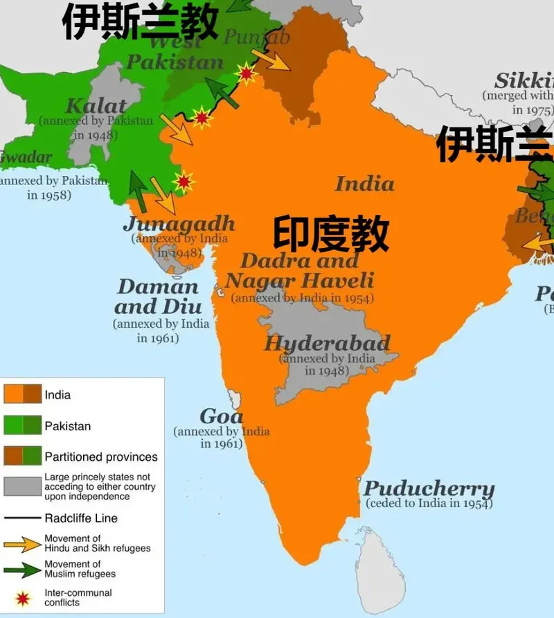 印巴分治后,印度教在印度的地位一家独大,甘地之死意味着印度教民族主义甚至朝着极端激进的极右翼民族主义演进。