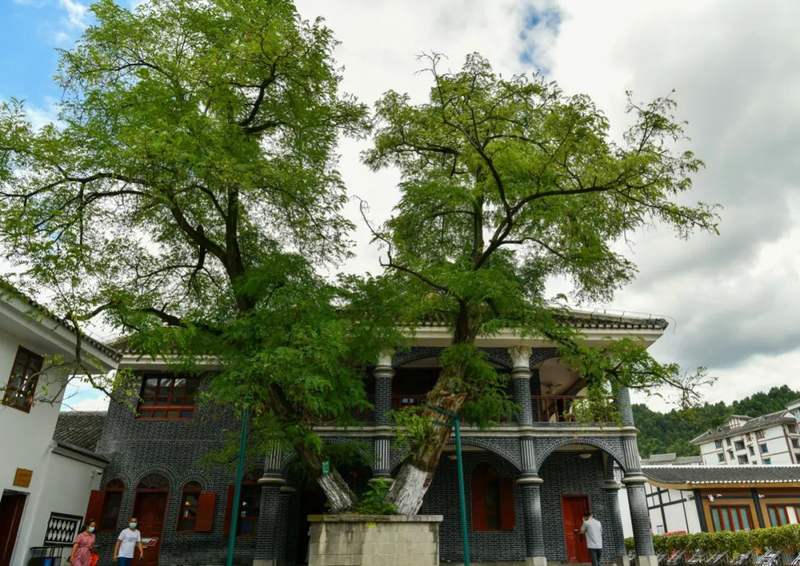 在小楼的东侧有一棵形如“V”字的大槐树,它与小楼相依相伴,大家都亲切地称它为“胜利树”,这是遵义会议纪念馆里的“活文物”,它见证了中国革命的伟大转折。如今,这棵槐树长得枝繁叶茂。