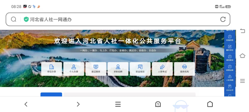 (一)进入hao123浏览器,录入:“河北省人社一网通办”进入下面页面: