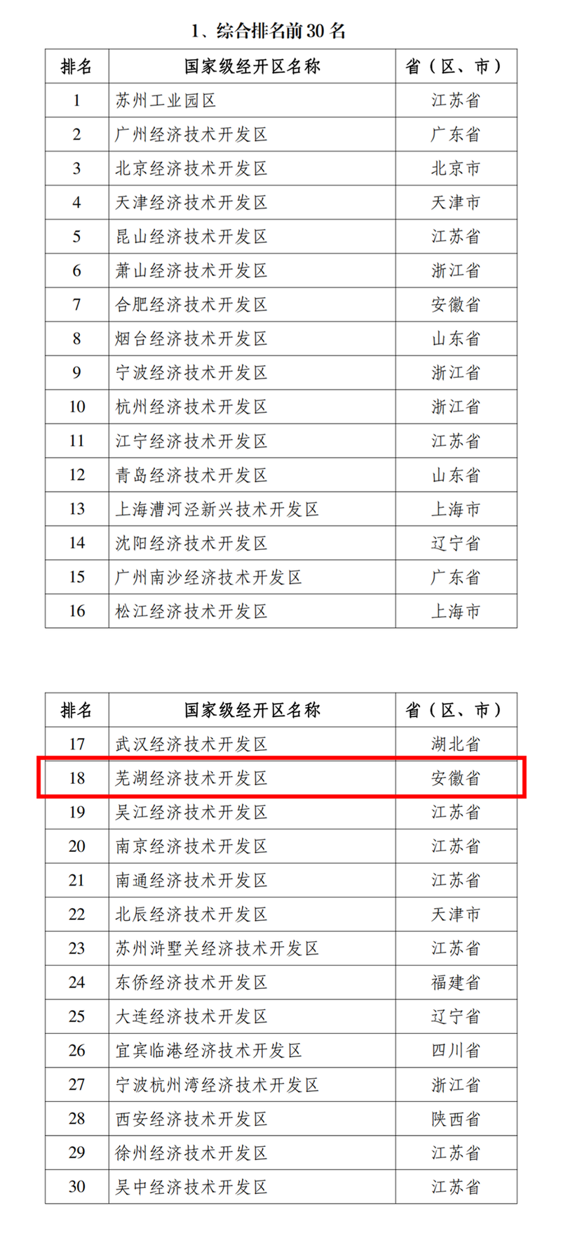商务部日前公布了2024年国家级经济技术开发区综合发展水平考核评价结果,在对229家国家级经开区2023年度综合发展水平情况进行考核评价中,芜湖经济技术开发区综合排名全国第18位,提升了两位。