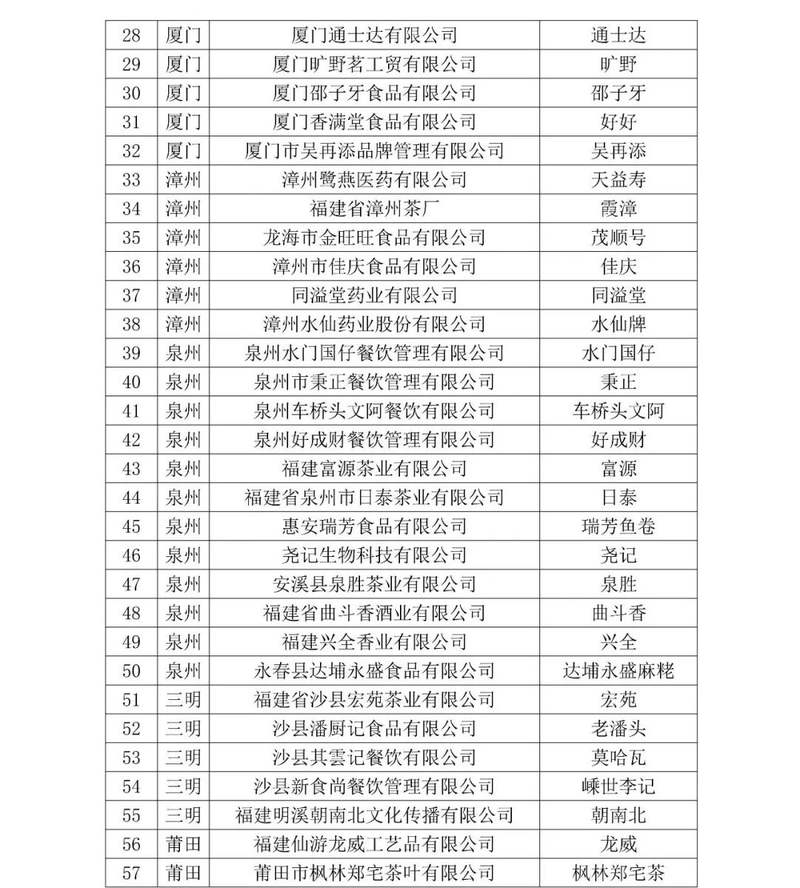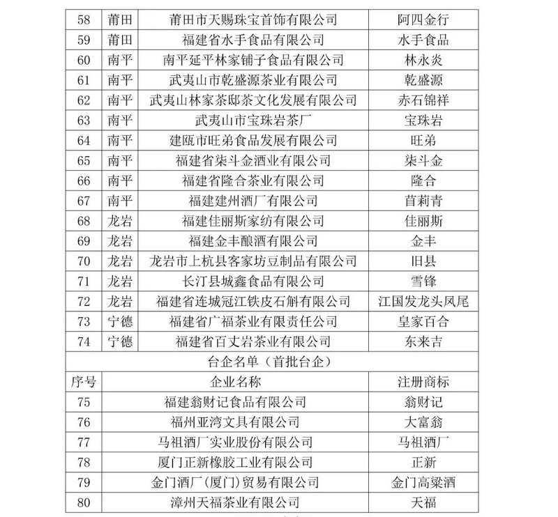 福建省商务厅决定将80个企业字号
