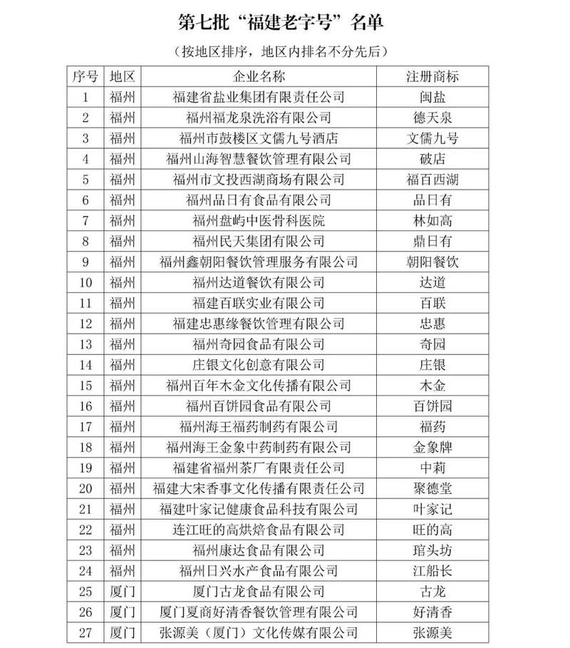 认定为第七批“福建老字号”