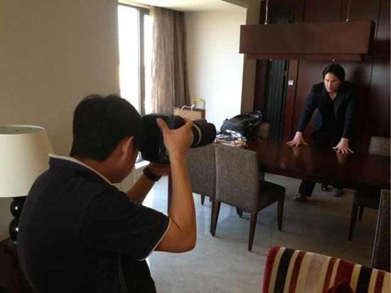 本报记者郭延冰为里维斯拍摄肖像图 本报记者 杨林 摄