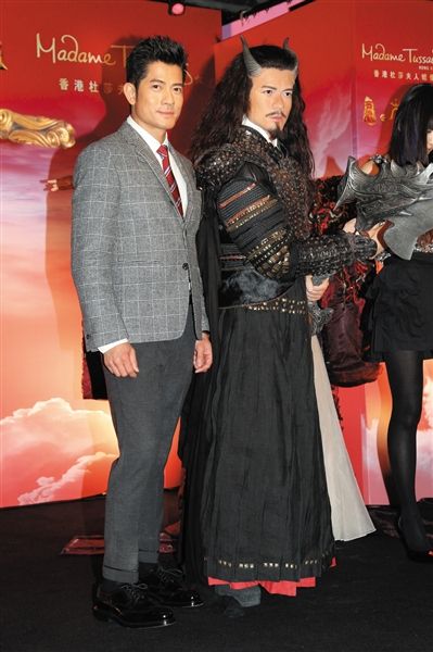 昨日揭幕自己的牛魔王蜡像后,郭富城表示实在太像自己,感觉蜡像胸口都有心脏跳动。他连忙拿着自己的手机和蜡像自拍,模仿蜡像的表情让记者拍照。郭富城表示,之前他在蜡像馆已有过歌手造型,这次配合制作蜡像只花了3个多小时,没想到效果如此之好,好像自己的孪生兄弟。郭富城在现场为媒体介绍蜡像造型,譬如身上的铠甲就是当时的戏装,完全由鳄鱼皮制作。牛角和额头则是一整个头套。谈到这次突破性造型,郭富城笑说:“如果同样的造型拍现代时装片更好玩,拿着武器走在大街上好像超级英雄呢。”