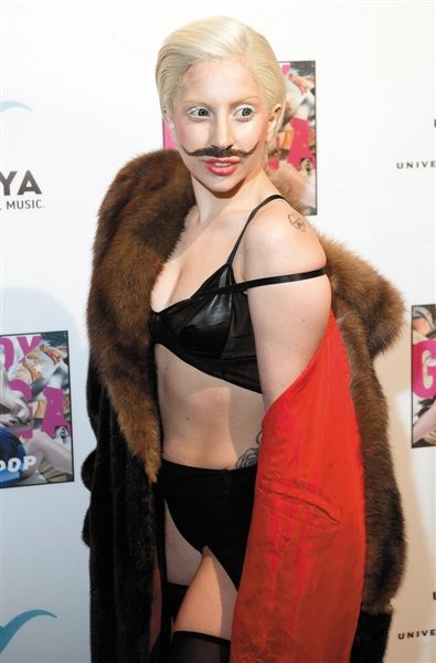10月24日,Lady Gaga柏林宣传新专辑《Artpop》,贴上小胡子。