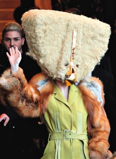 10月24日,Lady Gaga现身德国柏林,头变成巨大毛绒三角形。