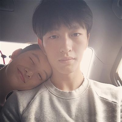 金大川经常在微博上晒和同为模特女友的搞怪自拍。
