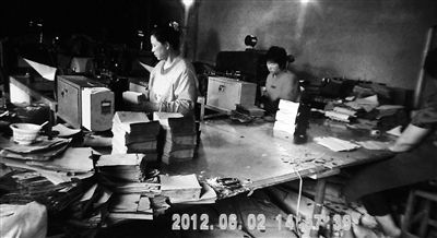 作坊内的工人正在整理制好的药袋,每台机器每天约生产15万个药袋。
