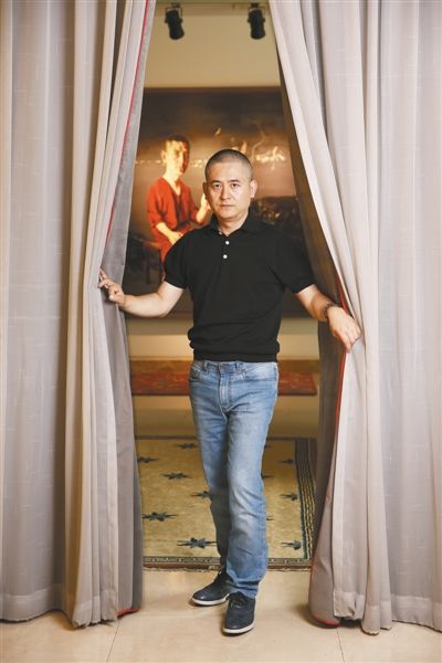 曾梵志掀起帷幔,他希望外界能抛开《面具》系列,用新的眼光看待自己。事实上,曾梵志自2004年后已经不再画《面具》。 新京报记者 郭延冰 摄