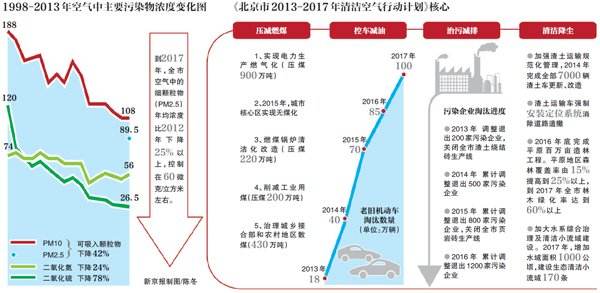 据了解,去年9月10日,国务院印发了《大气污染防治行动计划》(“国十条”),这是我国有史以来规模最大的大气污染治理行动。根据《计划》,京津冀区域的PM2.5需在五年内下降25%。