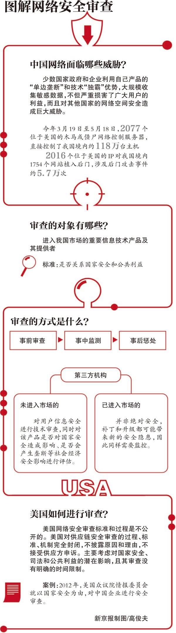 将重点审查重要信息技术产品和服务的安全性和可控性;不符合要求将不得在中国境内使用