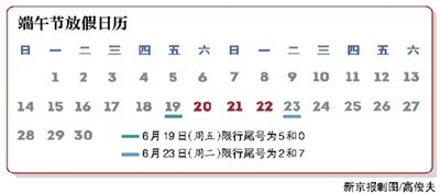6月20日至6月22日连休,机动车尾号不受限;6月23日尾号2和7限行
