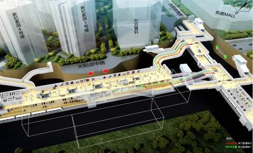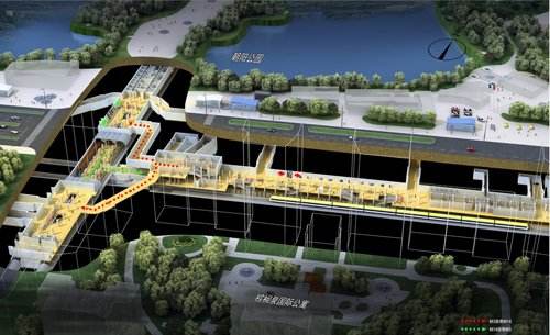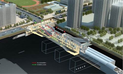 地点:万泉河路与长春桥路交叉口以西长春桥路下方,与在建的16号线换乘。16号线为叠落式车站,站台分别位于地下一层和二层。
