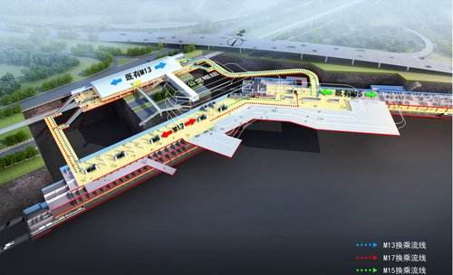 北侧换乘通道:从站厅通过换乘通道进入17号线北侧站厅再下至站台,通道长约104米,时间约4分钟。