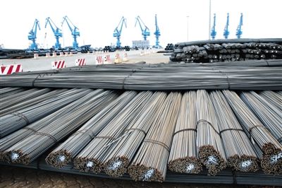2014年4月11日,曹妃甸通用码头,堆满钢筋等待出港。 新京报资料图片/尹亚飞 摄