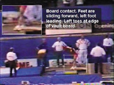 另外,桑兰看到贝鲁撤垫子是在助跑过程中,这段视频是助跑几秒种后,从桑兰踏上踏板开始。贝鲁完全有时间从落地区来到踏板旁边。