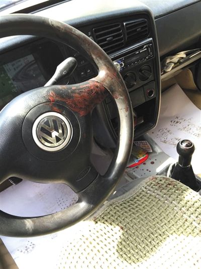 2日,销售沙石的个体户张先生往一小区送完沙后被人砍伤,车内血迹斑斑。当事人供图