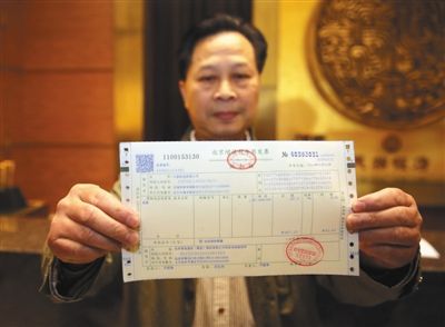 昨日凌晨,陈生在展示他开到的营改增试点全面推开后全国首张增值税发票。 新华社记者 殷刚 摄