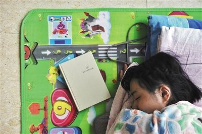昨日午间,307医院一楼大厅,妞妞盖着薄被子,正躺在铺在地上的毯子上休息。目前,她和刘艳军住在一楼大厅的拐角处,帮着照顾老人。