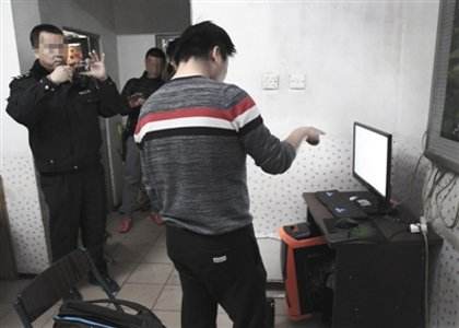 2016年12月30日,昌平沙河线材厂东宿舍居民区,犯罪嫌疑人陈某家,陈某指着自己的电脑,办案民警拍照取证。陈某,涉嫌通过网络向900多人出售“裸条”的淫秽图片及视频,获利数万元,被北京警方抓获。新京报记者 尹亚飞 摄