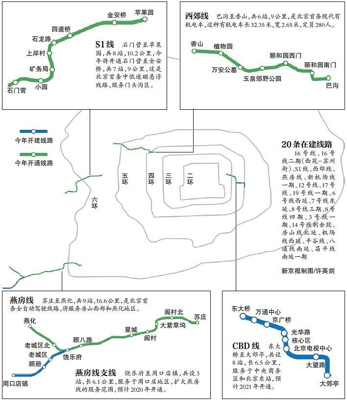 线路为东大桥至大郊亭;燕房线、西郊线、S1线石门营至金安桥段今年开通