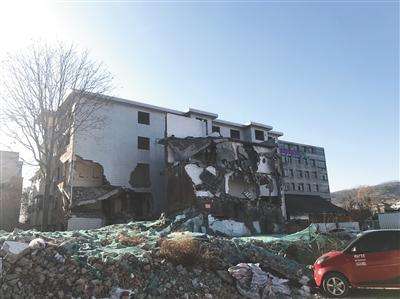 12月5日,河南卢氏县城东大街附近,拆了一半的居民楼。