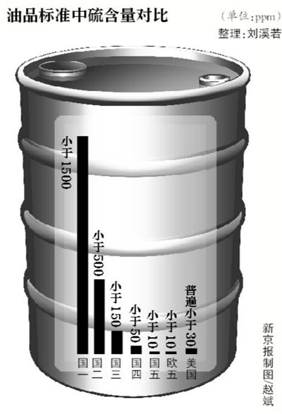 而此次成品油标准置换完成后,我国汽油质量标准将全面达到国四标准,油品中硫含量将从国三标准的小于150ppm(浓度单位,对气体来说,是指一百万体积的空气中所含污染物的体积数)降低至小于50ppm,下降67%,与美国汽油质量标准相当。