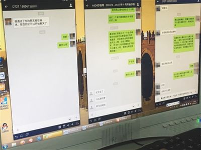 除了打电话,用微信开发新客户也是每个业务员的主要任务。新京报记者在公司看到,许多男业务员都是以女生账号与客户进行沟通。通过一款名为微汇通的微信营销软件,赵星在同一台电脑上登录了公司给的三个微信账号,这些账号的头像都是青春靓丽的美女。