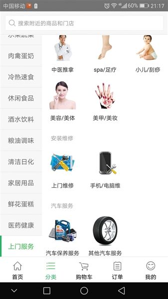 美容美体、上门维修、汽车保养等O2O业务在京东到家的二级页面最下方才能找到。