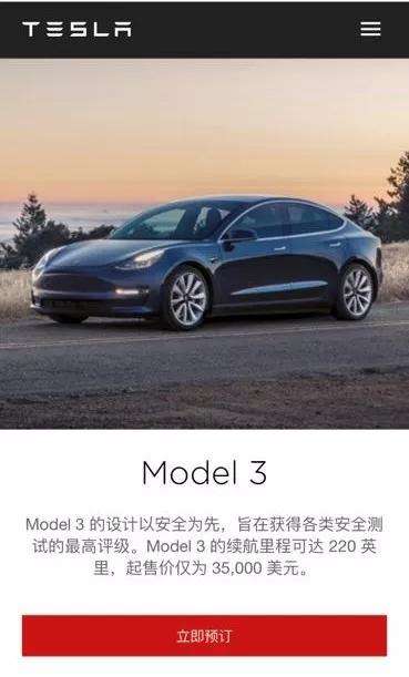 最新消息显示,特斯拉从周二起(7月10日),针对北美地区(美国和加拿大)取消了“平民神车”Model 3的预订系统,任何该地区消费者都可直接网络下单。