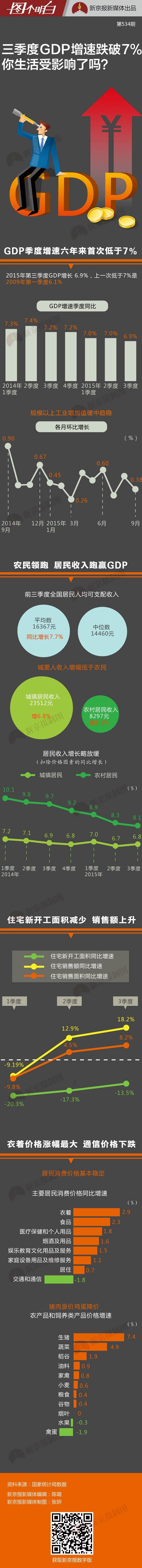 “GDP增长6.9%,应该说还是在7%左右。”对于GDP季度增速低于7%,国家统计局发言人是这样回应。都是“7%左右”, 但上一次在7 %的“左”还是2009年的第一季度。因此,再一次破7%,立即成为舆论焦点。但老百姓更关心自己的钱包和菜篮子。前三季度,居民收入跑赢GDP,同比增长7.7%。但这个数据要感谢农村居民,因为城镇居民收入同比增长不及GDP,只有6.8%,而农村居民收入增长了8.1%。(更多新闻,请关注新京报微信公号:bjnews_xjb)