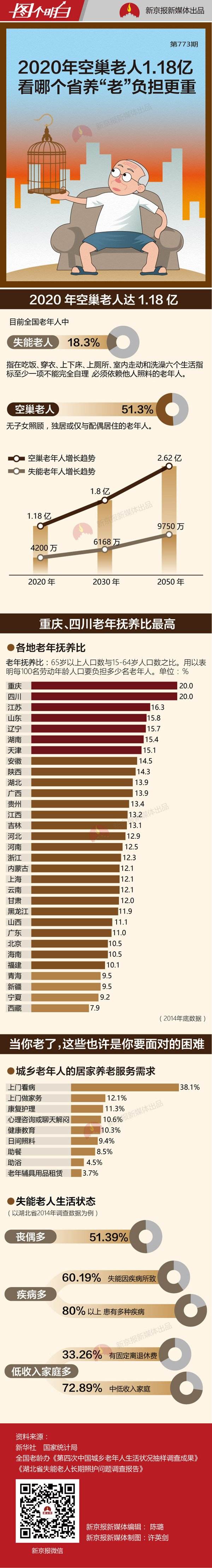 目前,中国的老年人中,一半是空巢老人,18.3%是失能老人。10月27日,全国老龄办披露,到2020年,我国的失能老年人将达到4200万,空巢老人达到1.18亿。
