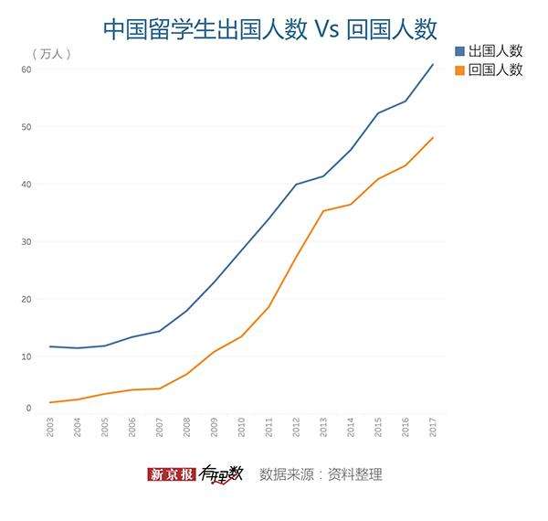 百余年后,中国成为世界上最大的留学生输出国。虽然出国留学的人数连年增多,“海归”数量的增长也不甘示弱。21世纪初,每100名出国留学生大约只有17人学成回国,而到了2017年,每100名出国留学生约有79人回国发展。