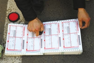 昨日,百荣世贸,一名快递员正往快递单子上提前盖章,准备忙时用。“双11”大促后,快递行业分外忙碌。新京报记者 尹亚飞 摄