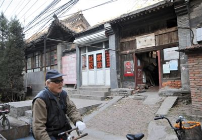 再向北走,也就是往法华寺过厅方向走去,房屋规整了一些。76岁的潘奶奶已在这里住了40多年,她告诉记者,这里就是法华寺的原址。“我家就是老道以前住的房子,前面那几间以前是停灵的房子。”潘奶奶指着北侧几间厢房说。