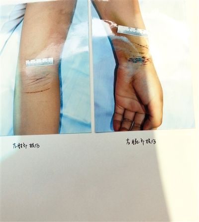 6月3日,在学校里,学生新新(化名)划伤自己的手腕。图/CFP