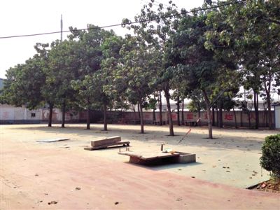 河南郑州搏强新观念培训学校不大的操场,平时是学生们训练体能的地方。5月19日夜里,学生郭玲玲在操场上接受两小时“加训”后死亡。 新京报记者 卢美慧 摄